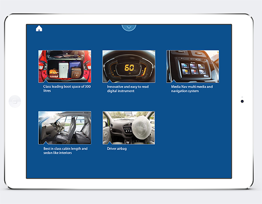 Saurabh ShitakThe aim of this project was to revamp the image of the car company in the passenger vehicle sector by adding digital/interactive engagements to existing car showrooms. The translation of understanding user experience, mapping the user journey, studying customer and salesmen touch points resulted in the development of UI screens for sales assist app, car configuration app, theatre zone, interactive zone and the selfie app. These apps were designed to engage both the customer and salesmen in virtual interaction to eventually boost car popularity and sales at both premium and popular car showrooms. Colour schemes were kept minimal and icons were designed in sync with the client’s original logo.