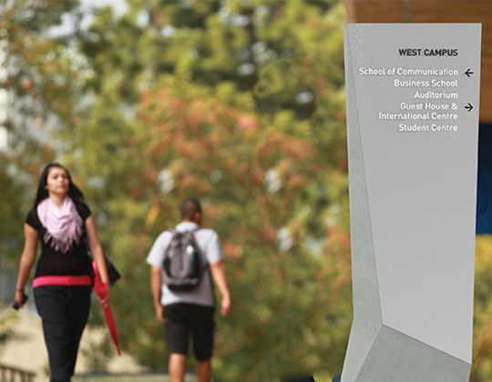 Vidyashree JaokarThis project aimed to create a wayfinding strategy and signage system to help the user navigate the university campus with ease and thereby binding the large campus through a unified system. The target group was primarily students/parents/visiting faculty and the community inhabiting the campus. The design focused on providing the campus with a sense of coherence and connectedness. The way-finding system provided the information needed to access the campus environment in a thoughtful and structured fashion transforming the unfamiliar surroundings into a comfortable, friendly, welcoming place. Signage was used as a communication tool not only to facilitate access, but also to reflect the institutional culture and complement the setting of the institute’s architecture and environment.
