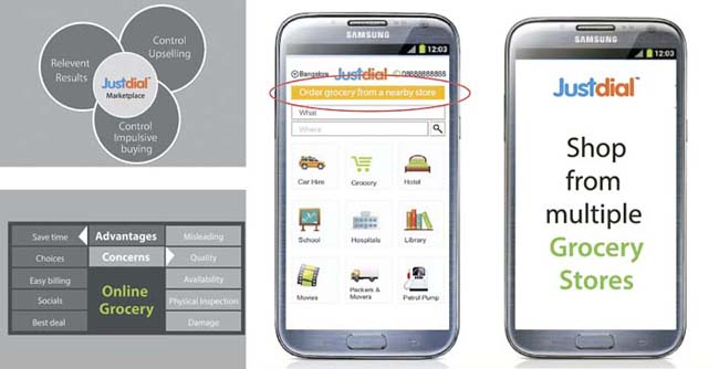 The Justdial online platform would provide grocery to the users from a nearby grocery store at the best price. This will also help save time, travel cost, and parking woes. The application will help users maintain and share grocery lists along with keeping a check on impulsive buying. The user will have the option of comparing prices, buying from two stores simultaneously; get delivery on a convenient time, pay using the cash-on-delivery mode, and through coupons.