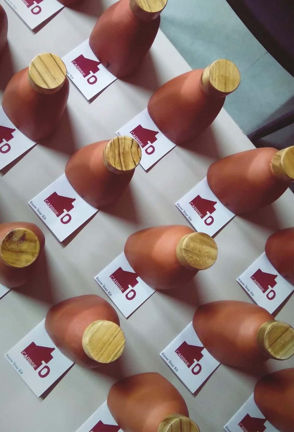 Shubham took inspiration from the visual characteristics and environment of the Net Zero Energy Building (NZEB) at CEPT to develop identity elements like the color scheme, fonts and logo options. The approved elements were printed on invites and other event collateral. An exhibition panel showcasing the journey of CARBSE, the event kit and a handmade paperweight pen stand for international delegates were also designed.