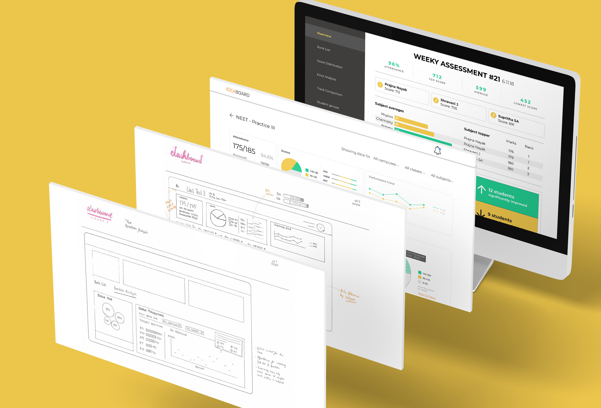 The project covers the development of a digitized learning system that aims to empower NEET/JEE preparation with data, powered by AI/ML, while retaining the students’ quality of life. The project follows a Lean UX methodology; the entire process is broken down into multiple iterations, starting off with the minimum viable product (MVP), and going on a cycle of Build - Measure – Learn. It prioritizes core functionality over being feature-rich.