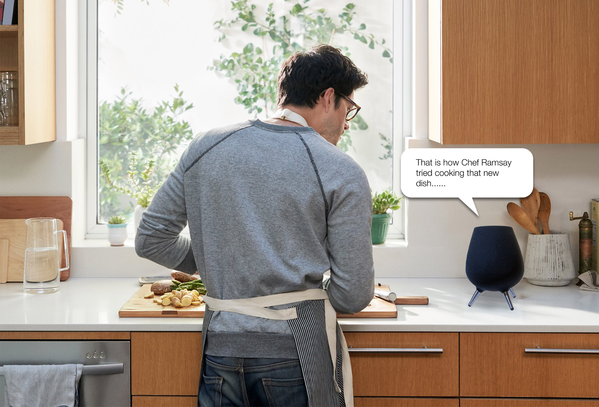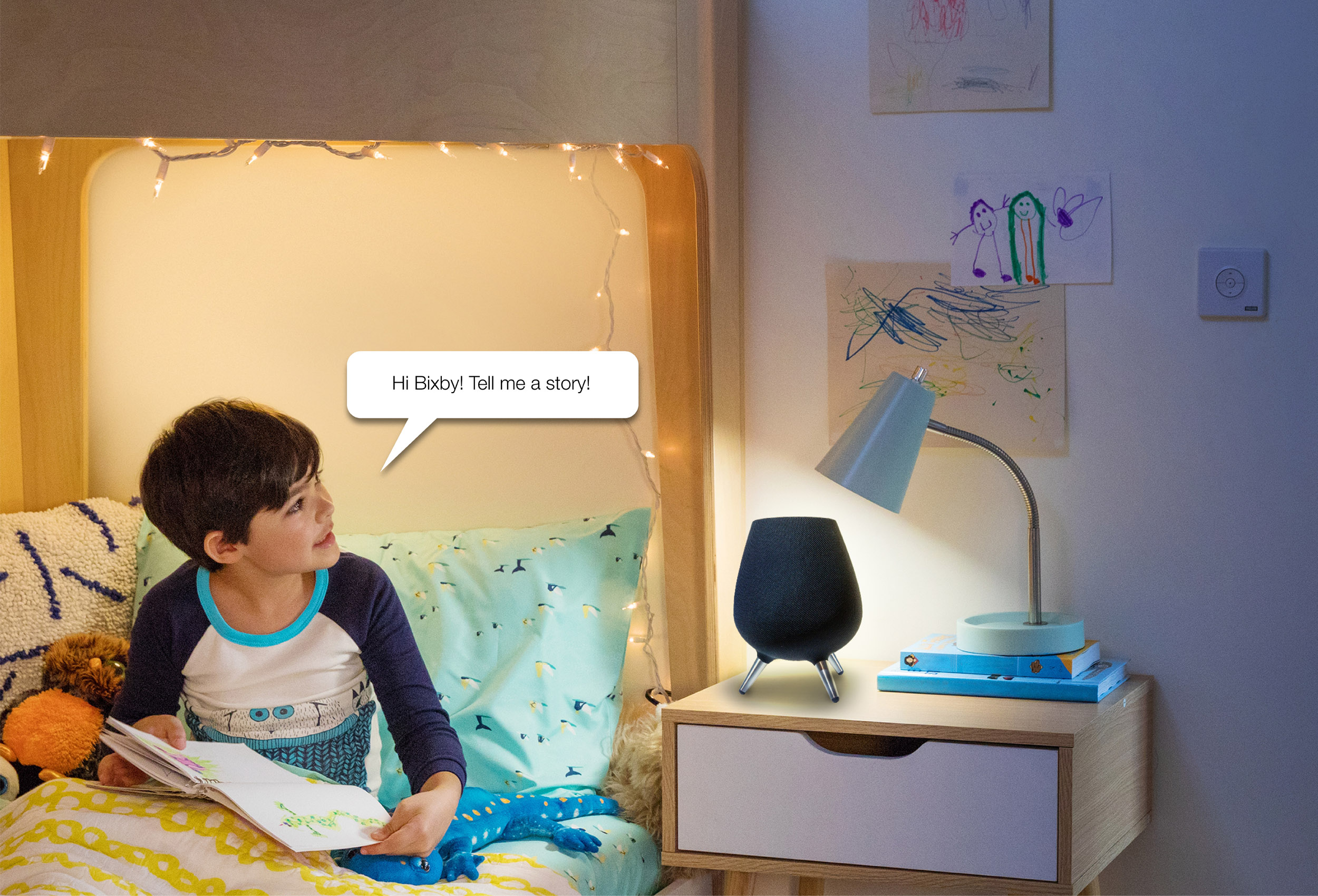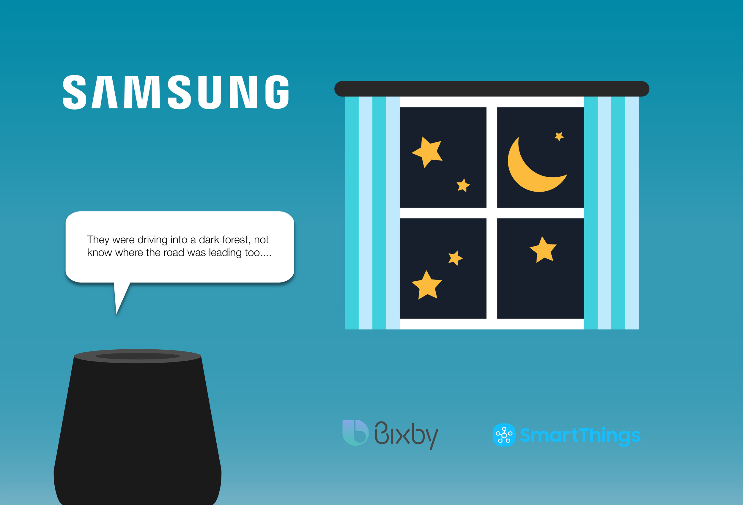 The project aims at providing immersive storytelling experience through voice assistant along with connected IoT devices. Premised on humans being fundamental storytellers, and the need to make voice assistants more human like, it argues that combining storytelling in voice assistance will be a desirable and interesting feature. Using mixed method research, the nuances of storytelling is understood through enunciation, semantic differentials and emotional responses. It also looks at gestural inputs for storytelling by considering connected IoT devices as storytelling props.
