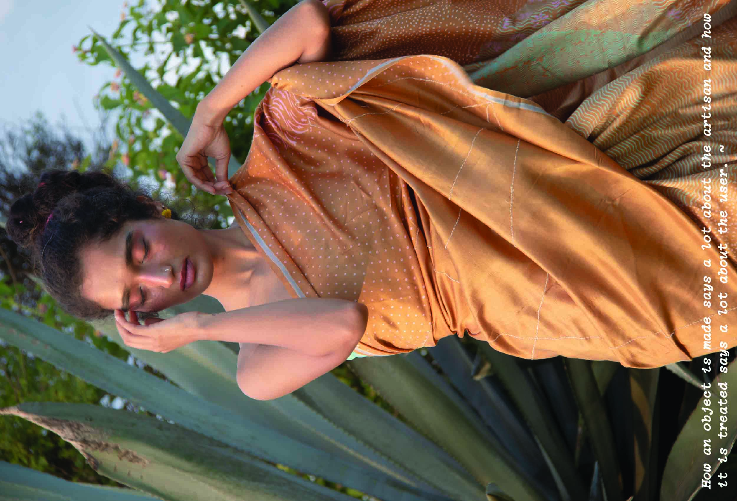 This project repositions saree from a six-meter-long canvas to an emotion a woman feels, a means to self-expression. This project is about different approaches taken while designing sarees in a corporate setting, inspired by three different themes, explorations, experiments, failures and successes, which all build a newer understanding of a saree.