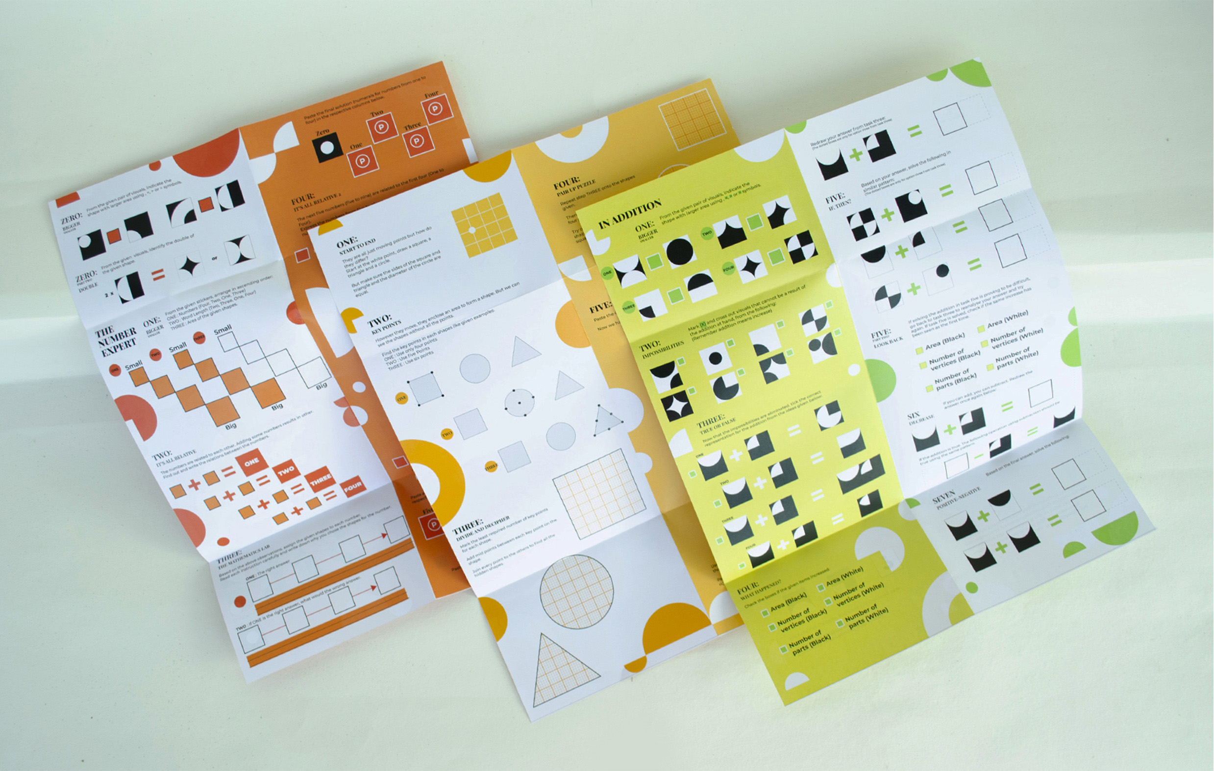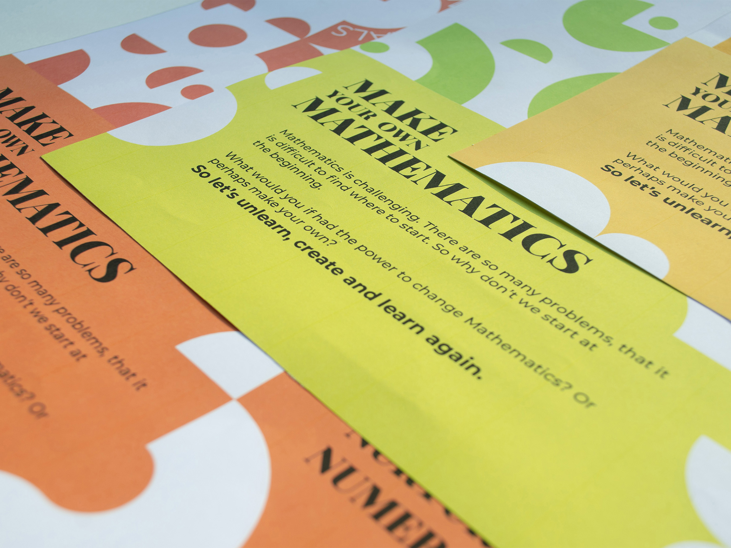 The Project involves the design and development of learning material and employment of visual communication strategies to create design deliverables, based on the theme ‘Mathematics’. The product intends to introduce disruptive ways for mathematical thinking and help cultivate positive mathematical mindsets in students of age 10-15 years. The final solution uses ‘Design Process’ to break down the parallel process of Mathematical Discovery. It also focuses on using Visual Semiotics and Laws of Visual Perception to demonstrate mathematical concepts. The product, ‘Make Your Own Mathematics’ provides learning material in the form of worksheets to be used in facilitated environments.