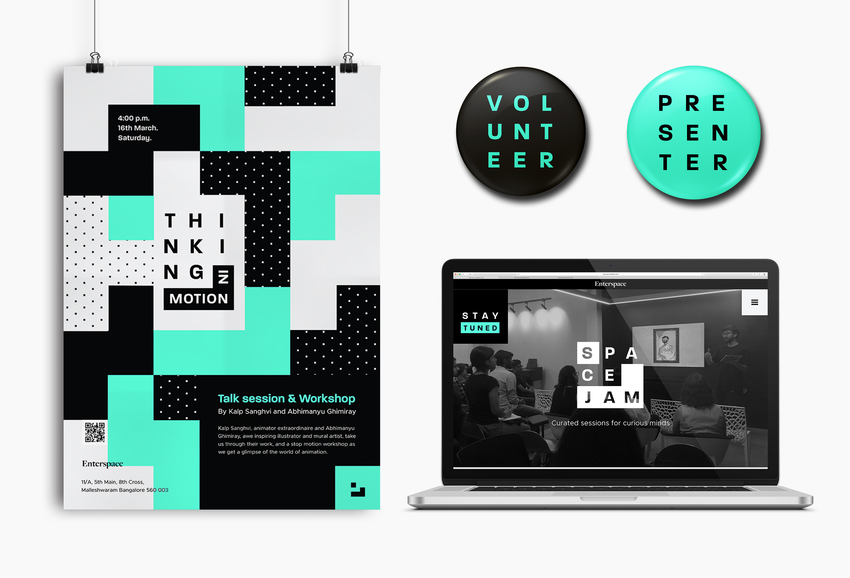 This project is a brand making exercise for SpaceJam, a platform for designers and other streams in business to come together and exchange information through workshops, events, conferences, pop-up shops, displays, portfolio reviews and more. It designed a system by which the dialogue works by building a strategy and the internal architecture of SpaceJam’s functioning.